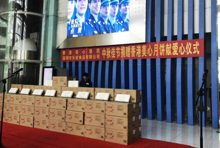 香港美心集團和深圳天成今年共捐出5011盒美心奶黃月餅,單價為255元,市場總價1277805元。分別為深圳市慈善會2000盒,深圳報團工會2311盒,鹽田區(qū)民政局700盒。