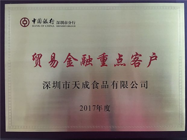 2017年12月18日深圳市天成食品有限公司林廣鋼先生受邀參加中國(guó)銀行股份有限公司深圳分行于五洲賓館深圳廳舉行的“融通全球,匯達(dá)天下”貿(mào)易金融重點(diǎn)客戶答謝活動(dòng).