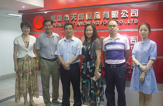 6.14區(qū)領導走訪我司指導工作 2016年6月14日上午,鹽田區(qū)區(qū)委常委、常務副區(qū)長黃偉平帶領助理王曉霞、經促局副局長陳忠曉、金融科科長王靜蒞臨深圳市天成食品有限公司進行企業(yè)走訪指導工作。 黃偉平率隊參觀我司,與我司董事長江紅娜、總經理林權炎合影。 黃偉平在會議中認可我司... -