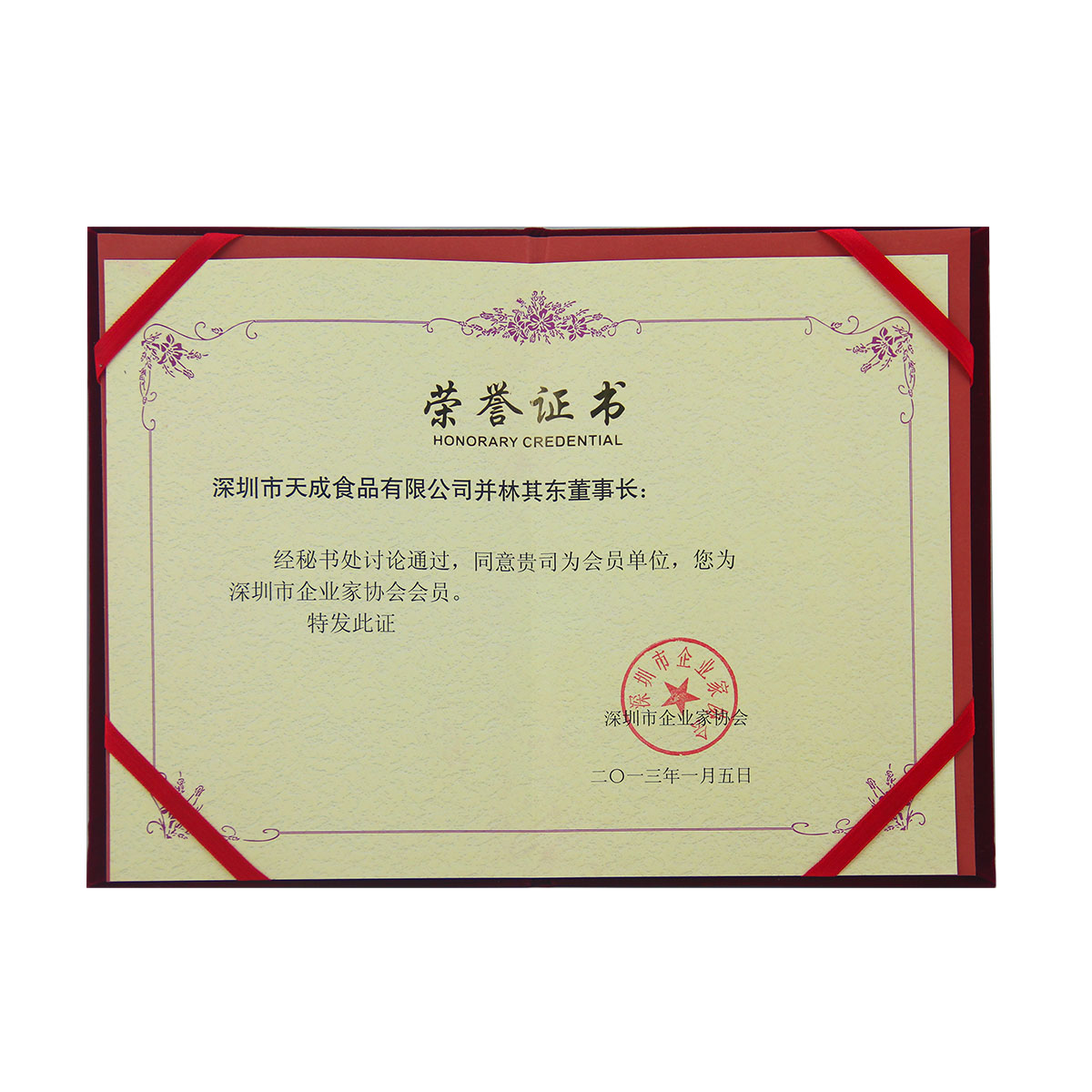 深圳市企業(yè)家聯(lián)合會會員單位證書